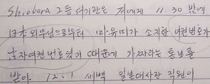 ▷ 공개된 수사기록상엔 번역본 단 1장, 그것도 고작 10줄만이 내용의 전부라는 점. (수사기록3385쪽, 원문은 수사기록3386쪽에 해당하나 미공개 됨)