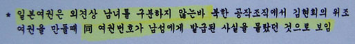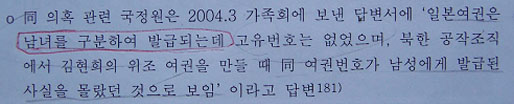 ▷ 그러나 2004년 국정원이 가족회에 보낸 답변서엔 일본여권은 외견상으로 남녀를 구별하지 않는다고 밝힘. (‘국정원의 가족회 답변서’2004.3, 28쪽)