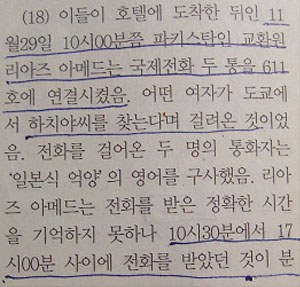 ▷ 그러나 어느 경우에도 일본보도기관으로부터의 전화를 시간적으로 설명할 수 없음.