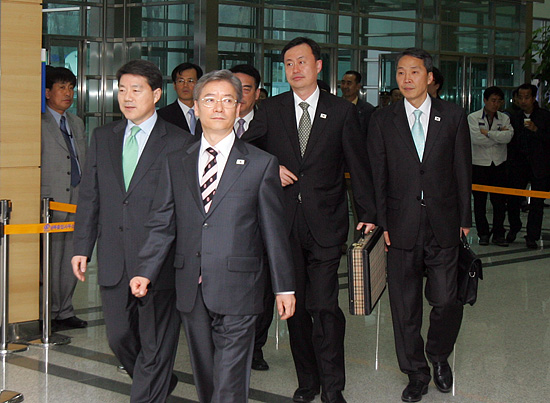 북측의 제의에 따라 개성공단에서 첫 남북 당국간 접촉을 가질 김영탁 개성공단사업지원단 단장 등 남측 대표단 7명이 개성공단으로 떠났다.