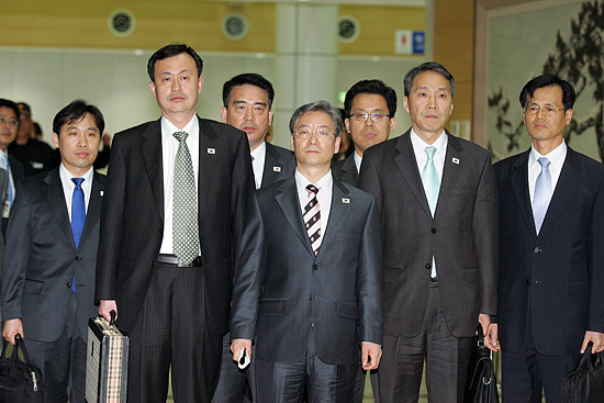 남측 대표단은 21일 오전 8시 40분경 도라산 남북출입경 사무소를 출발해 경의선 육로로 개성공단으로 향했다. 이들은 8시 45분경 군사분계선(MDL)을 지나 오전 10시경부터 현 정부 들어 첫 남북 당국간 접촉을 가질 것으로 보인다.