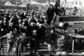 ▲ <성장의 길에서>(1965) : 이승만 정권의 4.19부정선거 규탄시위 장면 [자료사진-유영호]