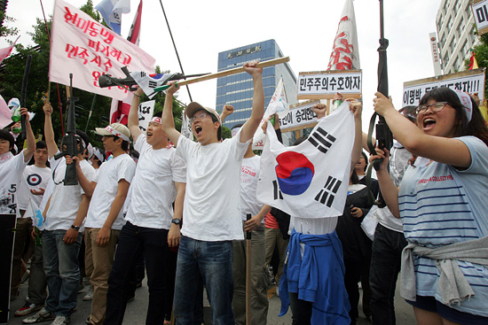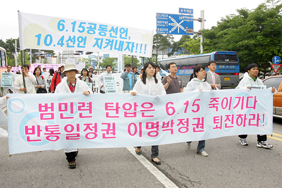 17일 낮 12시, 광주 전남대학교에서 금남로까지 범민련은 제 시민사회단체와 대학생들과 함께 '5.18 자주통일대행진'을 진행했다.[사진-통일뉴스 조성봉 기자]