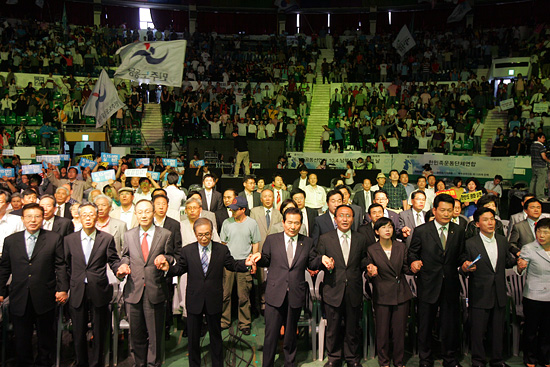 이어 지난 6.10대회에서 야당과 시민사회단체가 연대한 것을 언급하면서 "이제 우리 모두 다시 힘을 합쳐서 이명박 정권이 6.15, 10.4를 존중한다는 확실한 대답을 들을 수 있도록 분명하게 압력을 넣자. 당당하고 똘똘 뭉쳐서 이명박 정부의 대북기조를 확실히 바꿔내자"며 연대와 단합을 강조했다 .