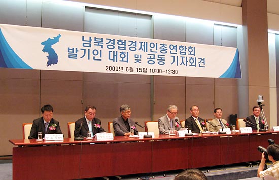 15일 오전 10시 서울 프레스센터에서 '남북경협경제인총연합회 발기인대회'가 열렸다. 발기인대회에 참석한 대북사업자들은 설립취지문을 통해 "현재의 남북간 경색은 민간부문의 경제교류협력까지 고사상태로 내몰고 있어 이에 대한 조치가 시급히 마련돼야 한다"고 밝혔다.