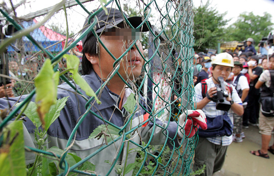 쌍용자동차 사측의 '협상 결렬선언'으로 긴장감이 고조되고 있는 가운데, 3일 오전 경기도 평택 쌍용자동차 도장 공장에서 '총고용 보장,대화를 통한 평화적 해결' 등을 요구하며 점거농성 중인 쌍용 노동자들.[사진-통일뉴스 조성봉 기자]