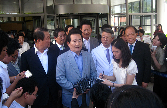 정세균 민주당 대표는 오전 11시 25분께 병원을 찾아 "김대중 대통령은 죽을 고비를 넘기시고 온 몸으로 민주화를 이룩하신 분"이라며 "이번 병마와의 싸움에서도 꼭 승리하실 것이라 믿는다"고 말했다.
