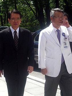 이날 오후에도 DJ를 찾는 정치권 인사들의 잰 걸음은 끊이지 않았다. 오후 1시 30분, 김형오 국회의장을 비롯해 오후 2시, 이회창 자유선진당 총재 등 당 지도부들이 병원을 찾았다.