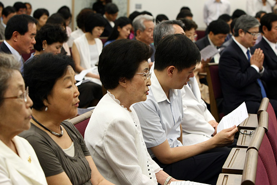 김 전 대통령의 회복을 염원하는 기도회가 이희호 여사 등이 참석한 가운데, 11일 오후 4시 서울 신촌 세브란스병원 6층 예배실에서 열렸다.