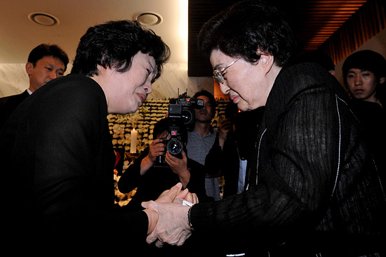 반기문 유엔 사무총장도 오후 6시쯤 빈소를 찾아 이 여사와 손을 맞잡으며 애도의 인사를 전했다.
