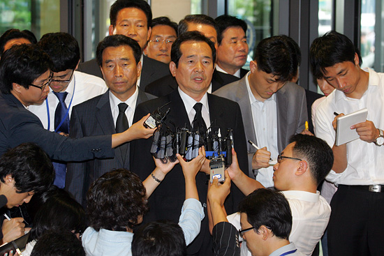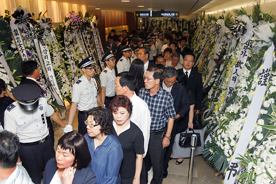 오후 6시 47분쯤, 병원을 찾은 김형오 국회의장은 빈소로 가는 길에 "어디 들어오냐", "이 한나라당 쓰레기들" 등 시민들에게 심한 욕설을 듣기도 했다.