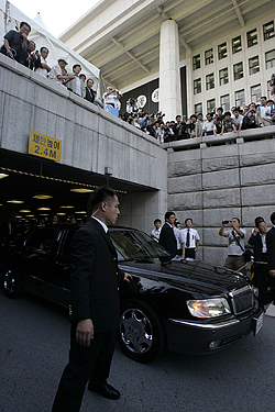 ▲ 북측 조문단이 탄 차량이 빠져나가고 있다. [사진-인터넷사진공동취재단]