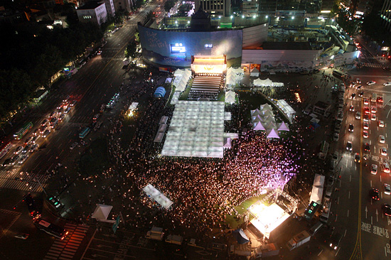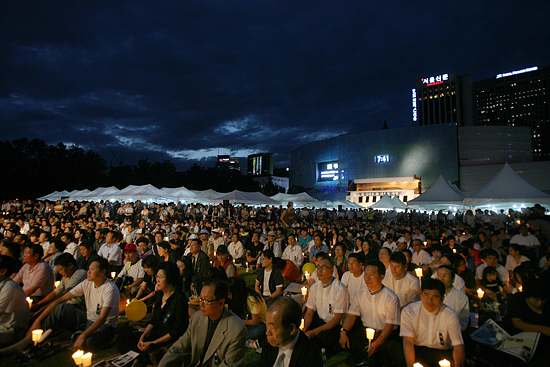 이날 민주당과 시민추모위원회가 주최한 문화제에서 각계와 시민 등 5천여 명은 김 전 대통령의 서거를 받아들이면서 "행동하는 양심이 되자"고 했던 고인의 뜻을 실천하겠다는 의지를 모았다.