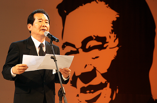 김대중 전 대통령의 영결식을 하루 앞둔 22일 오후 7시, 서울광장에서 열린 '김대중 전 대통령 시민추모문화제'에서 정세균 민주당 대표는 준비해 온 추모사를 담담한 목소리로 읽어 내려갔다.
