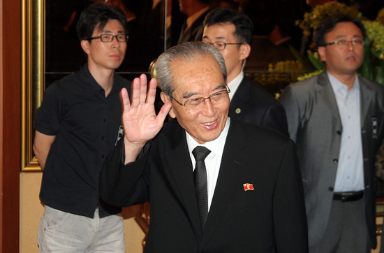 김기남 비서는 호텔 로비에 대기하던 기자들을 향해 가슴에 손을 대고 두 차례 정중하게 "감사합니다"라고 말하고 손을 흔들며 "좋은 기분으로 간다"라고 말했다. 김양건 부장도 차에 올라타며 "감사합니다"라고 인사했다.