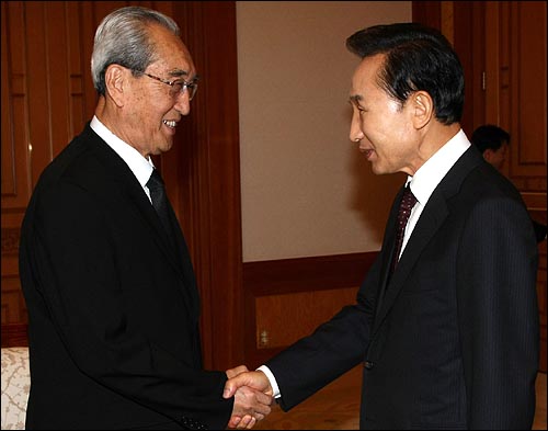 결국 오늘 당초 장례위원장인 한승수 국무총리의 주요국 조문단 접견을 이 대통령이 대신하면서 자연스럽게 북측 특사 방문단을 맞게 된 것.