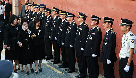 생전 참 많이도 아꼈다는 손자 종대 씨가 고인의 영정을 들고 사저로 들어갔다. 이 여사 등 가족들은 진달래꽃이 흐드러지던 정원에 멈춰섰다. 이 여사는 이제 이 집에 '남편'이 없다는 것이 새삼 실감이 나는 듯 손자가 할아버지의 영정을 들고 사저를 둘러보는 내내 눈물을 흘렸다.