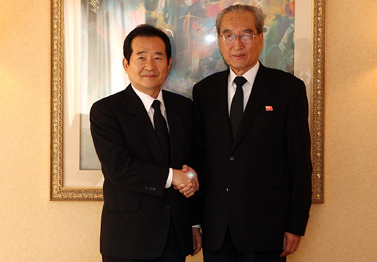 '특사 조의방문단' 단장으로 방남했던 김기남 북 노동당 비서가 지난 22일 정세균 민주당 대표와 만나 "미국과의 관계 역시 새 정부에 기대가 있었다. 문제는 정책이 행동으로 구현되어야 한다"면서 이같이 토로했다. 만남에 배석했던 강기정 비서실장이 24일 오후 밝혔다.