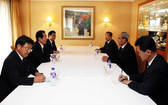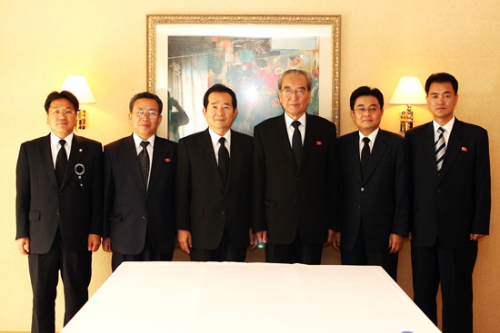 22일 오전 9시15분부터 30분간 서울 홍은동 그랜드힐튼호텔에서 이뤄진 이날 면담에는 북측에서 김기남 당 비서, 원동연 아태 실장, 리현 아태 참사가 배석했으며, 민주당 측에서는 정세균 대표 외에 강기정 비서실장, 전병헌 전략기획위원장이 배석했다.