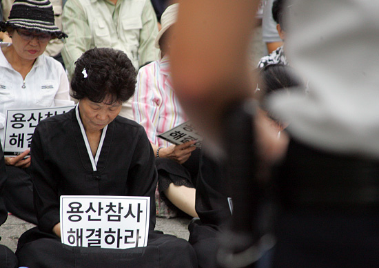 용산참사 7개월 째를 맞은 29일 오후, 대한문 앞에서 유가족, 시민사회단체 회원들 100여 명이 모인 가운데 용사참사 해결 촉구를 위한 희생자 추모대회가 열렸다. [사진-통일뉴스 조성봉 기자]