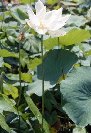 진창 구렁에서 솟는 꽃대 끝에 청정한 꽃 한 송이를 달고 물속에서 나고 자란 이파리 물을 타지 않는 청결함이여