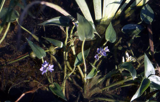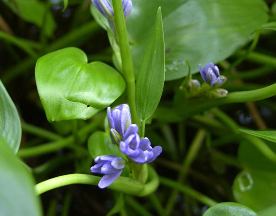 연못이나 습지에 뜨면 그 싱그럽고 물기 많은 이파리와 자주색 꽃차례가 예쁘다