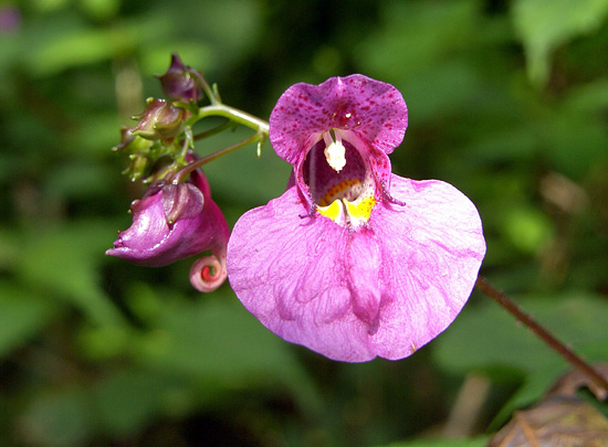물봉선은 산의 그늘진 개울가나 추진 데서 자라는 한해살이풀이다. 번식력이 좋아서 무리를 짓고 산다. 두어자 높이까지 자라 덤불을 이루며 8~9월에 걸쳐 잎겨드랑이에 붉자주색 꽃을 피운다. 주머니 모양의 꽃 안쪽 꿀주머니(距)는 나사모양을 이루며, 열매가 익으면 튀겨서 씨를 날리는 습성이 있다. 노란색 또는 흰색 꽃을 다는 종(種)도 있다.