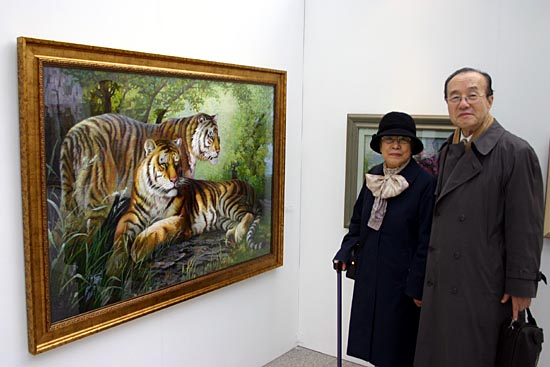 인민예술가인 김청희(62세)의 ‘숲속의 호랑이’는 호랑이의 위엄이 살아있는 대형 수예품으로 특히 찍음수 기법으로 숲 속 나무와 풀의 질감을 살려내는 등 사실적 표현이 돋보인다. 북한 수예작품의 정교함은 이미 세계적으로 알려져 그 작품성을 인정받고 있다.