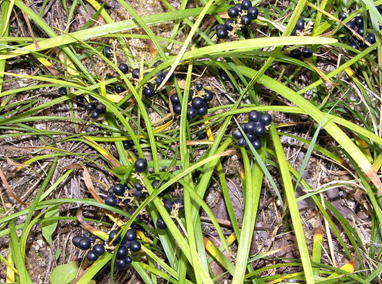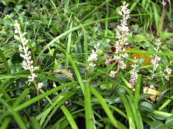 뭇 야생초 가운데 자리다툼을 아니하면서도 그 앞을 함부로 못 지나게 하는 경외로운 겸손 맥문동.