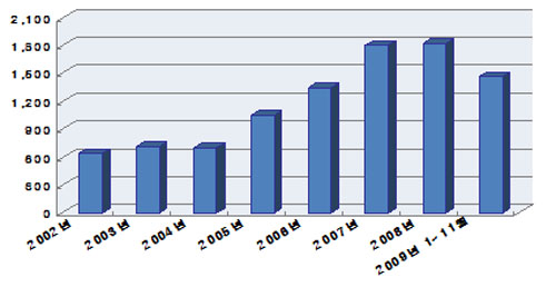 올해 1월부터 11월까지 남북교역액은 약 14억 6,200만달러로 전년 동기 약 13.9%가 감소했다. 지난해까지만 해도 증가세를 유지하던 남북교역액이 올해 들어 큰 폭으로 감소한 것은 이같은 상황을 단적으로 보여주고 있다.