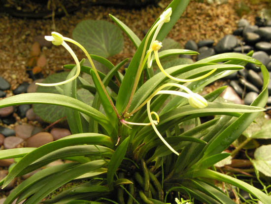 풍란(風蘭)은 남부지방의 바위나 고목에 붙어 사는 늘푸른여러해살이풀(常綠多年草)인데 반그늘을 좋아한다. 난획으로 말미암아 자생지에서 보기는 힘들지만, 요즘은 조직배양 방법으로 번식시켜 온실에서 많이 키우고 있다. 가는 이파리는 안으로 옥아 처지면서 층층으로 자란다. 꽃철은 6~7월로 늦은 편이고, 가늘고 희게 피었다가 노랗게 변한다. 향기가 아주 진하다.