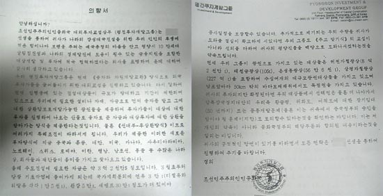 평건그룹이 발송한 이 의향서는 올해 2월 말 남측 해당 기업이 수신한 것으로 알려졌다.
