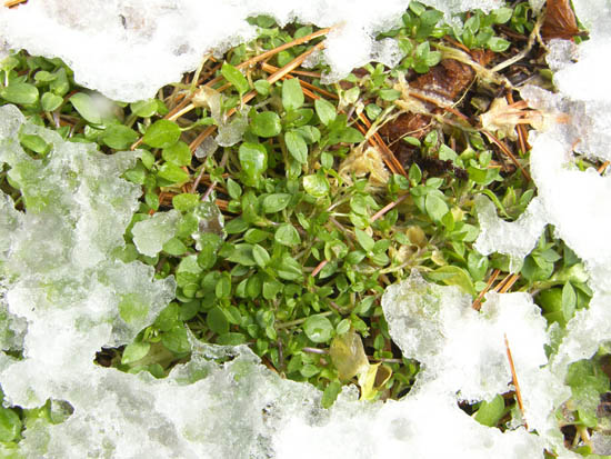 ▲ 별꽃. 눈 속의 월동엽. [사진 - 정관호]