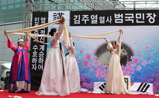 이어진 순서에서는 매년 4월 11일 마산에서 치러지는 4.11민주항쟁 기념식에 매번 참여해 추모곡을 불러주는 가수 고명숙 씨가 무대에 올라 김주열 열사의 추모곡 ‘남원땅에 잠들었네’를 처연한 목소리로 불렀다.