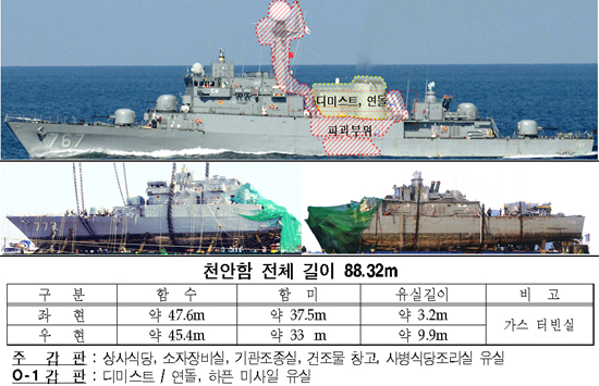 ▲ 천안함 절단 측면도. [자료 제공 - 국방부]