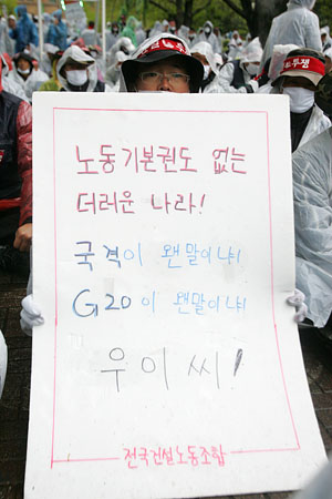 총파업 상경투쟁에 나선 건설노조 조합원들이 특수고용 노동자들의 노동3권을 보장해 줄 것을 요구하며 구호를 외치고 있다.[사진-통일뉴스 조성봉 기자]