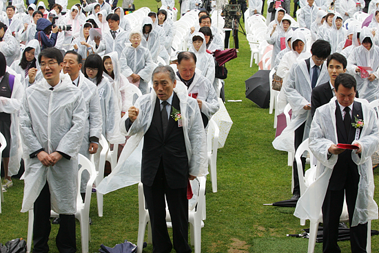 서울시 측은 기념식 무대 위에 '태극기'가 없다는 것을 늦게 발견하고 시청에서 급히 태극기를 공수해 오는 동안 참석자들은 고스란히 비를 맞고 앉아 있었다.