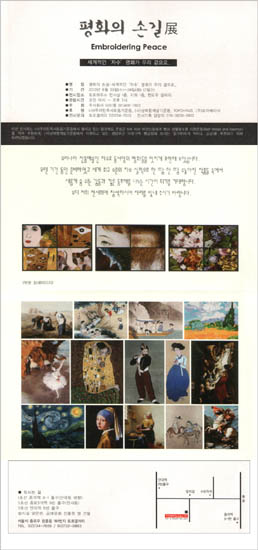 이번 전시회에서는 동서양의 명화를 북한 공예가들의 정교한 자수 작품이 전시된다. 전시회 수익금 일부는 우리민족서로돕기운동의 온성군 어린이돕기 사업에 쓰여질 계획이다.