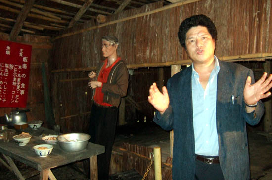 사진은 당시 함바(노동자 숙소) 내부 모습. 식사는 보리밥 한사발에 거친 반찬이 전부였고, 이 관장 뒷쪽 잠자리에는 20명 정도가 비좁게 기거했다. [사진 - 통일뉴스 김치관 기자]