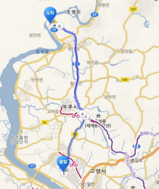 (2) 11:30-14:30: 임진각으로 출발 및 도착(약 35km, 경찰 및 녹색자전거봉사단 안내로 이동, 하단 지도 참조)