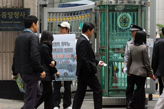 금강산관광재개에 대한 북측의 회담 제의가 연일 계속 이어지고 있는 가운데,'다시 가자 금강산' 카페지기 서봉은 씨가 13일부터 2박 3일간  통일부 앞에서 이명박 정부의 대북정책을 비판하며 1인시위를 하고 있다.[사진-통일뉴스 조성봉 기자]