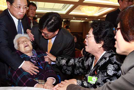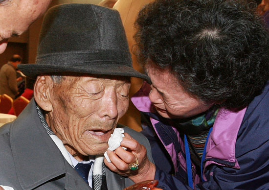 남측 최고령 상봉자 김정례(96)씨는 작별상봉에서 북측의 딸 우정혜(71)씨를 만나자 마자 울음을 터뜨렸다. 첫날 상봉 직전까지도 "긴장은 무슨, 딸 만나는데 좋기만 하지"라며 웃던 김씨였다. 하지만 딸을 다시 만날 때까지 세월이 기다려주지 않으리라는 것을 김씨는 예감한 듯 했다. 딸 정례씨는 노모를 쓰다듬으며 "됐어 이제, 엄마"라고 달랬지만 "울지마, 인차(곧) 만나자"라고 말하던 와중에 결국 눈물을 쏟았다.