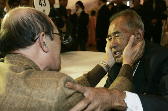 난생 처음 만난 남측 시어머니 김차금(90)씨의 얼굴을 부비며 작별을 아쉬워한 북측 곽을선(55)씨, 상봉장 도착 순간부터 울기 시작한 남측 김병춘(84)씨에게 “울지 마십시오.이렇게 만나지 않았습니까”란 말로 달랜 올케 정정삼(73)씨 등 상봉장 94개 테이블마다엔 한 맺힌 94가지 드라마가 펼쳐졌다.