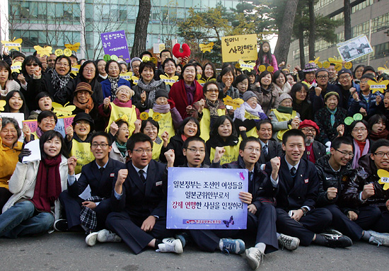 한국정신대문제협의회 창립 20주년을 기념하는 944차 정기 수요시위가 17일 낮 12시 서울 중학동 주한 일본대사관 앞에서 열렸다.[사진-통일뉴스 조성봉 기자]