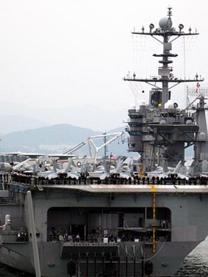 ▲ 28일 서해상에서의 한미연합훈련에 참가예정인 미 항공모함 조지워싱턴호.[자료사진-통일뉴스]
