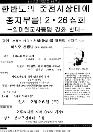 그랬더니 직접적인 계기는 작년 11월 23일 연평도포격 사태에 접했을 때라고 했다. 갈수록 전쟁에로 치닫고 있는데 일본에서도 무엇을 해야 하지 않겠나 하는 생각이 치밀어 올랐다. 그러다가 삼천리철도 주최로 진행된 2002년 3월 JSA투어, 같은 해 6월 나고야에서 이시우 사진전에서 작가를 접한 기억이 떠올라 이 기획을 생각했다고 했다.