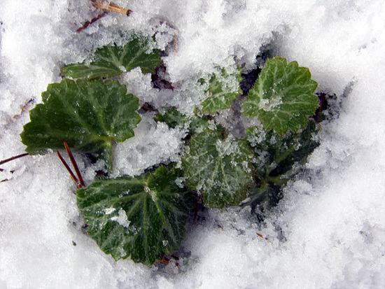 흙을 찍어보면 얼음인데 용케도 동상을 모르고 이파리 흰 무늬까지 또렷하다