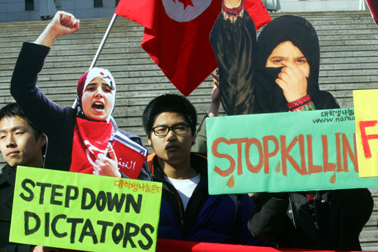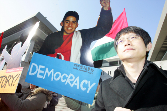 한국은 4.19혁명 이후 30여년 동안 군부독재에 맞서 국민적 저항으로 민주화를 이뤄냈다. 중동-북아프리카 독재국가에서의 민주화 물결에 가장 큰 힘이 되는 것은 민주화를 이뤄낸 한국의 응원이 아닐까?[사진-통일뉴스 조성봉 기자]