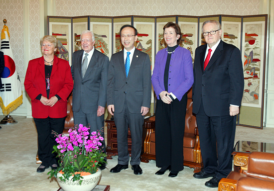 카터 전 대통령을 비롯해 마르티 아티사리 전 핀란드 대통령, 그로 브룬틀란 전 노르웨이 총리, 메리 로빈슨 전 아일랜드 대통령 등 '디 엘더스(The Elders)' 방북단 4명은 기념촬영과 잠깐의 환담 외에는 비공개로 현 장관과 면담을 가졌다.