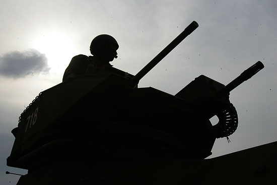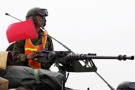 ▲장갑차에 탑승한 해병대원이 경계태세를 갖추고 있다. [사진-통일뉴스 조성봉 기자]